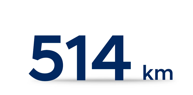 Variantā ar 65,4 kWh akumulatoru KONA Electric ar vienu uzlādi spēj nobraukt 514 kilometrus, kas ir labākais rādītājs klasē.