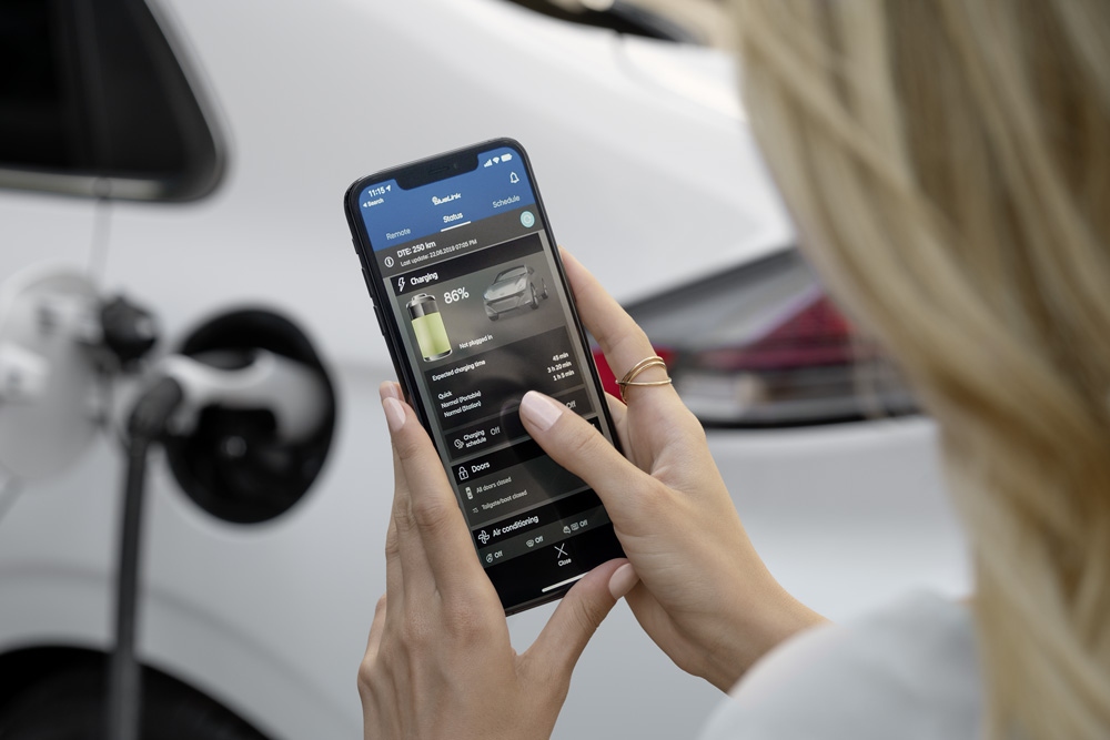 IONIQ Electric 2021-го модельного года предлагает расширенные службы подключения Bluelink®, подключенную автомобильную систему, которая позволяет водителям Ioniq Electric дистанционно управлять кондиционированием воздуха, и все версии предусматривают удаленное запирание или отпирание дверей через приложение для смартфона. Благодаря Bluelink можно дистанционно, через приложение, также контролировать и создавать расписания процесса зарядки.