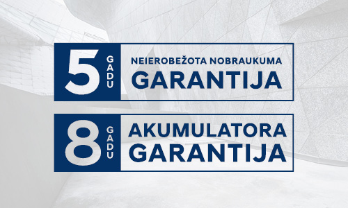 - 5 gadu garantija bez nobraukuma ierobežojuma.